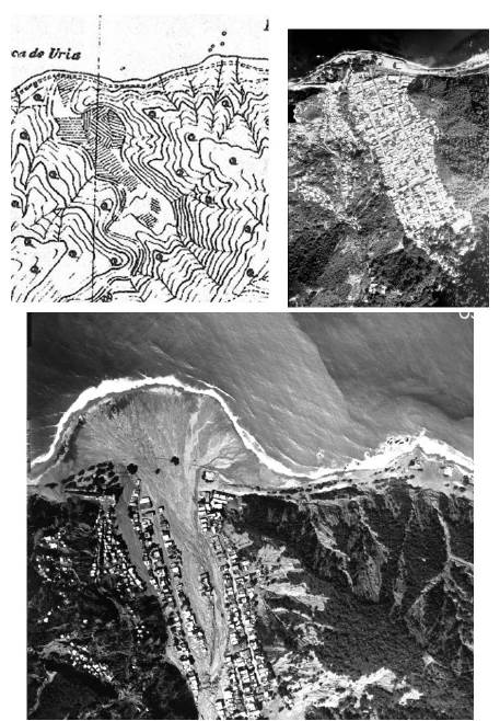 Con el evento de 1999 pudimos advertir directamente estos depósitos y las alturas alcanzadas, lo que permite realizar reconstrucciones en retrospectiva, interpretando que en cada uno de los cauces desbordados por los aludes se arrojaron sedimentos que, de no haberse removido, habrían elevado la altura de todos los abanicos aluviales del litoral. Luego de diciembre de 1999, el urbanismo intervino en su beneficio, y al igual que en el pasado, sepultó las evidencias de la regularidad de estos eventos al remover los escombros y llevar la vialidad a su condición anterior. Solo en el caso de Camurí Chico esto no fue así, y de allí que sirva de ejemplo y estímulo a buena parte de los razonamientos en este trabajo.