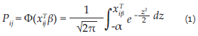 Pij es la probabilidad de ocurrencia del evento de participar de un individuo i en cualquiera de las actividades celebratorias en ambas festividades, en la localidad j de cada ciudad; X ij.. es el vector de variables explicativas descritas, que incluyen los factores estructurales. Por su parte, el vector de parámetros representa los efectos de cada una de las variables explicativas en la decisión de participación, que se interpretan como probabilidades.