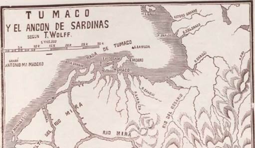 No obstante, durante las dos últimas décadas del siglo XIX y las tres primeras del XX, estos dos puertos tuvieron un desarrollo económico diverso ligado a las exportaciones. Por un lado, Tumaco se fortaleció a finales del siglo XIX por el establecimiento de casas comerciales enfocadas en la explotación forestal, principalmente la tegua y el caucho (Restrepo, 1999, p. 60). Por otro lado, Buenaventura se conectó a través del ferrocarril con las zonas productivas de Cali, Palmira y Antioquia (Posada, 1998, p. 279)