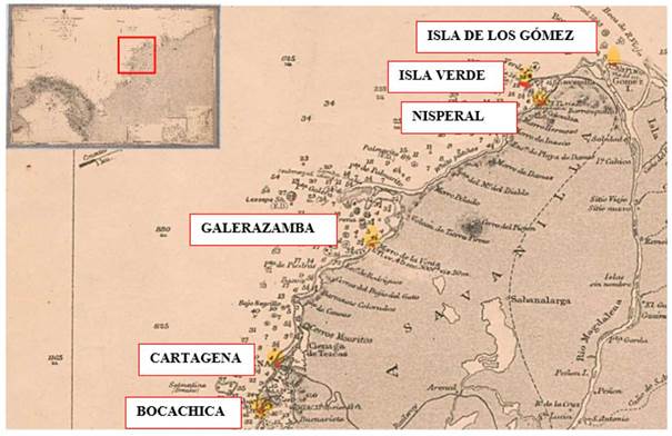 La ausencia de estas ayudas a la navegación representaba un peligro para el comercio en los puertos. Ilustrativo de ello es el caso de la bahía de Cartagena. Como se aprecia en el mapa 5, los accidentes geográficos interferían en la navegación. Para el ingreso al puerto era imperioso adentrarse en la bahía, evitando primero los bajos de Salmedina. Luego, era necesario entrar por el sur, por Bocachica, puesto que durante el siglo XVIII se cerró el paso por Bocagrande. La entrada ya mencionada era estrecha y dentro de la bahía se encontraban los bajos de Santa Cruz, que podían representar un verdadero riesgo para las grandes embarcaciones. Así, por ejemplo, el 10 de agosto de 1916, la comandancia de puerto de Cartagena informó al gobernador del departamento que los capitanes de vapores marítimos habían echado en falta las boyas que se habían dañado a la entrada del canal de Bocachica y en la bahía. El comandante consideraba que era necesario llamar la atención sobre estas faltas, pues ya eran cinco las boyas ausentes, pero, sobre todo, por las quejas del capitán del barco Carrillo de la United Fruit Company. Este había avisado por la prensa del peligro para la navegación que representaba la bahía y que "constituye un descrédito para este puerto que puede traer hasta el abandono de él"5.