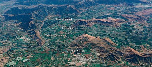 La localidad de Lo Zúñiga, ubicada en el corazón del valle del río Cachapoal (figura 2), no estuvo ajena a los procesos en torno a la propiedad agrícola que experimentó el valle central de Chile. La historia del poblado remite a 1765, cuando el cura Antonio Zúñiga instaló una parroquia para cubrir las necesidades espirituales y comunitarias de los trabajadores de las haciendas vecinas, configurándose en torno a ella un poblado que fue conocido como Toquigua. Esto confirma que la instalación de misiones e iglesias que fueron levantadas por esa época generaron una vida social que fue el origen de muchos asentamientos del área central chilena (Bengoa, 2015, p. 83).
