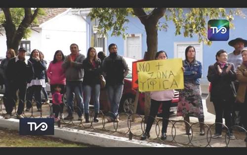 El conflicto ha generado una división en los habitantes del pueblo y ha problema-tizado el papel de la preservación patrimonial en el desarrollo de la localidad. En mayo de 2019 hubo una manifestación pública de vecinos en el casco histórico del poblado. La iniciativa tenía como fin reunir firmas para exigir al CMN el fin de la categoría de Zona Típica para el poblado. Algunos de los carteles que portaban los vecinos expresaban la frase "No más Zona Típica" (figura 7). El argumento de los manifestantes fue, precisamente, que la preservación inhibía el desarrollo de infraestructura imprescindible para los sectores aledaños (TVO San Vicente, 2019).