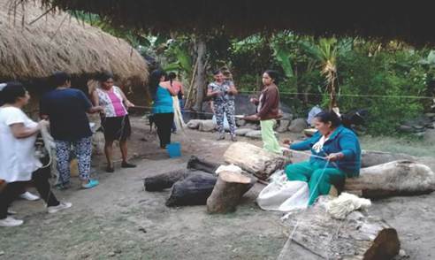Las jóvenes hoy tenemos ese aprendizaje, aprendiendo, viendo cómo se está tejiendo el chinchorro, y de ahí fui también aportando, ayudando a las mujeres a envolver la cabuya; entonces, por eso estoy aquí haciendo ese acompañamiento, ya que como autoridades también se tiene el propósito de acompañar todos estos espacios que hoy como comunidad también nos van a ayudar a fortalecer, más que todo a las mujeres. Mi abuela era saga, y eso fue lo que le enseñó a mi mamá y ella a mí, entonces yo le enseño eso a mi hija. (Joven kankuama, 2018)