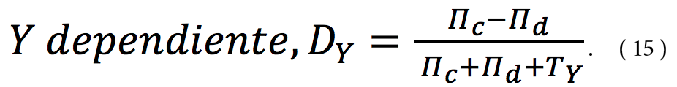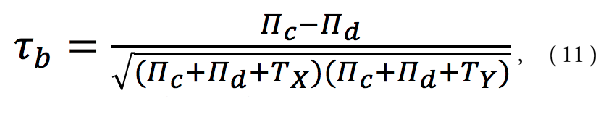 Se dice que un par de datos es concordante si el individuo presenta un alto valor en X y también en Y; se dicen discordantes cuando un alto valor de X se asocia con uno bajo de Y. Sean Πc la suma de los pares concordantes, Πd la suma de los pares discordantes, np el número total de pares, m el min{número de filas, número de columnas}, TX el número de pares empatados en X, y TY el número de pares empatados en Y (son empatados si dos casos tienen valores idénticos en una o en las dos variables). Se definen entonces las siguientes medidas: