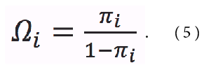 ( 4 )Si Ωi>1, la posibilidad de éxito es mayor que la de fracaso. Así, la razón de posibilidades se escribe como