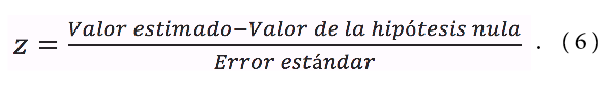 ( 5 )La razón de posibilidades, θ, puede tomar cualquier valor no negativo. Particularmente, cuando θ=1 significa que las variables X y Y son independientes; por otro lado, θ>1 indica que es más probable que los sujetos de la fila 1 tengan un éxito que los sujetos de la fila 2. Por tanto, valores altos de θ representan una mayor asociación entre las variables (Agresti, 2002). Es importante señalar que θ no cambia su valor cuando se intercambia la orientación de la tabla, por lo que no es necesario identificar a una de las variables como variable de respuesta. Cuando se tienen tablas IxJ, las razones de posibilidades describirán los patrones por sub-tablas 2x2.