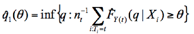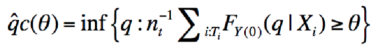 El segundo término es la parte de la desigualdad asociada con la diferencia en las remuneraciones a las características, es decir corresponde a la parte de la desigualdad del logaritmo de salarios, debido a las diferencias (cuantiles) de las características entre hombres y mujeres. La cual se explica por la función cuantílica no condicionada basada en un tratamiento binario de (mujeres 0 y hombres 1) y reflejaría la función contrafactual, refleja la variable explicativa del logaritmo de salarios por hora, son las variables explicativas para el individuo , en este caso educación y experiencia potencial y es la función acumulada.