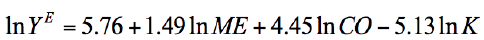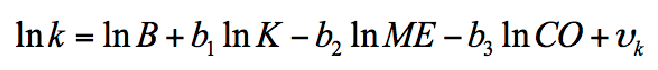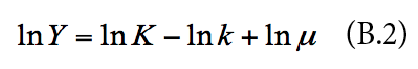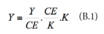 Then µ is defined as the utilization rate of the economic capacity (Y/CE) and k as the capital-capacity ratio (K/CE). Taking natural logs of equation (B.1), obtains: