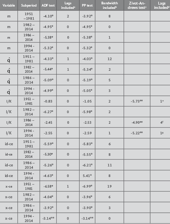 Given our previous results, we can postulate the long-run equation determining Mexico’s economic capacity for the period 1950 – 2014 as follows: