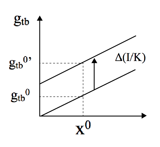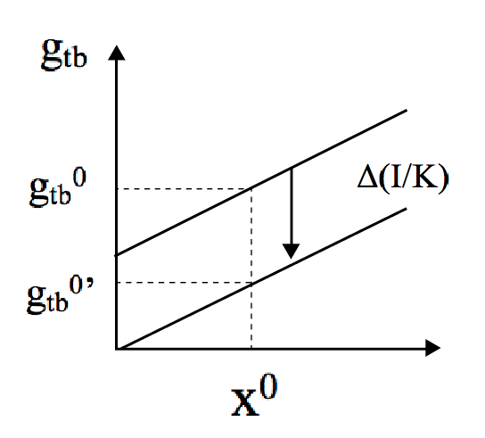 Now, given x0, if ψ is higher (equal or lower) than (to) ψI, an increase in I/K will impart a positive (null or negative) effect on gtbI (see Figures 1a, 1b and 1c), whilst will exhibit a direct relationship with gtbI(see Figures 1d,1e and 1f).