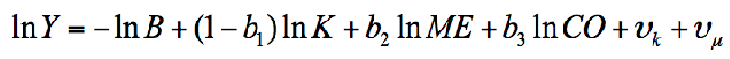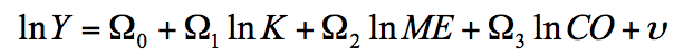 where Ω0= –lnB, Ω1 = (1-b1), Ω2 = b2, Ω3 = b3 and υ = υk+υµ. Now, we can estimate equation (B.6) with a contegration technique to obtain the Economic Capacity.