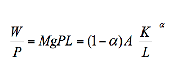 where α and 1-α are capital and labor elasticities of output respectively. The domestic output is used as a consumption good (C) and as an export good (X), whilst all the investment goods are imported (all imports are investment goods). Firms maximize profits; therefore, their demand for labor rises up to the point where the marginal product of labor (MgPL) is equal to W/P: