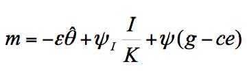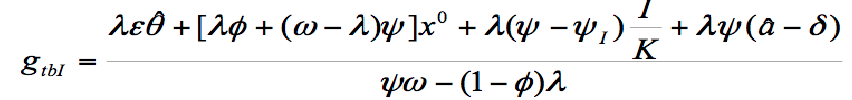 where δ is the depreciation rate of capital and is the growth rate of capital productivity. Substituting equation (14) into equation (13), the latter can be rewritten as: