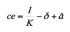 Before explaining the above equation, let us assume that the growth rate of economic capacity is equal to the net capital accumulation plus the growth rate of capital productivity: