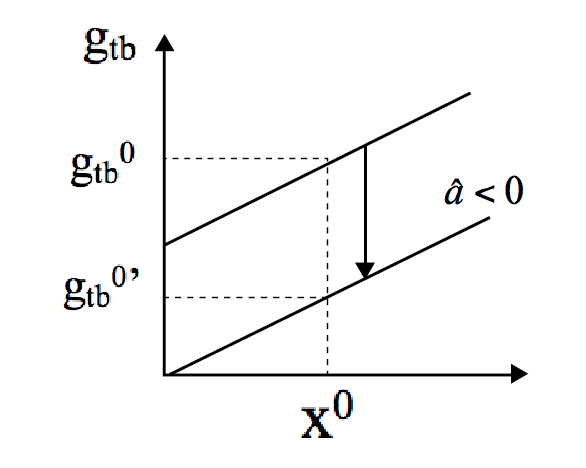 Again, aiming for a simple explanation of our result, assume that the trade balance is in equilibrium (it means that ϕ=1) and that the external demand for domestic goods tends to zero (it means that (1-λ) and (1-ω) tend to zero). Then, , x and convey a positive effect on gtbI; if ψ-ψI is higher (equal or lower) than (to) zero, I/K will convey a positive (null or negative) effect on gtbI. Finally, δ conveys a negative effect on gtbI.