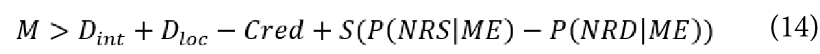 Donde la última igualdad se desprende del hecho que P(NRD|ME)+P(NRS|ME)=1, la cual también garantiza que,