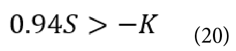 por lo tanto, K-1.06S<0, lo cual es lógico ya que K<0. No obstante, si se considera la otra cota de la probabilidad, P(NRD|ME)>0, se tiene que,