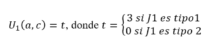 Para que J2 descifre cuándo se enfrenta al jugador 1 como tipo 1 y cuándo al jugador 1 como tipo 2, se basa en la experiencia y asigna creencias subjetivas sobre el tipo de persona a la que se enfrenta. Estas creencias se definen como probabilidades respecto a los tipos de J1 que se enfrenta el jugador 2, esto es,se basa en la experiencia y asigna creencias subjetivas sobre el tipo de persona a la que se enfrenta. Estas creencias se definen como probabilidades respecto a los tipos de J1 que se enfrenta el jugador 2, esto es,