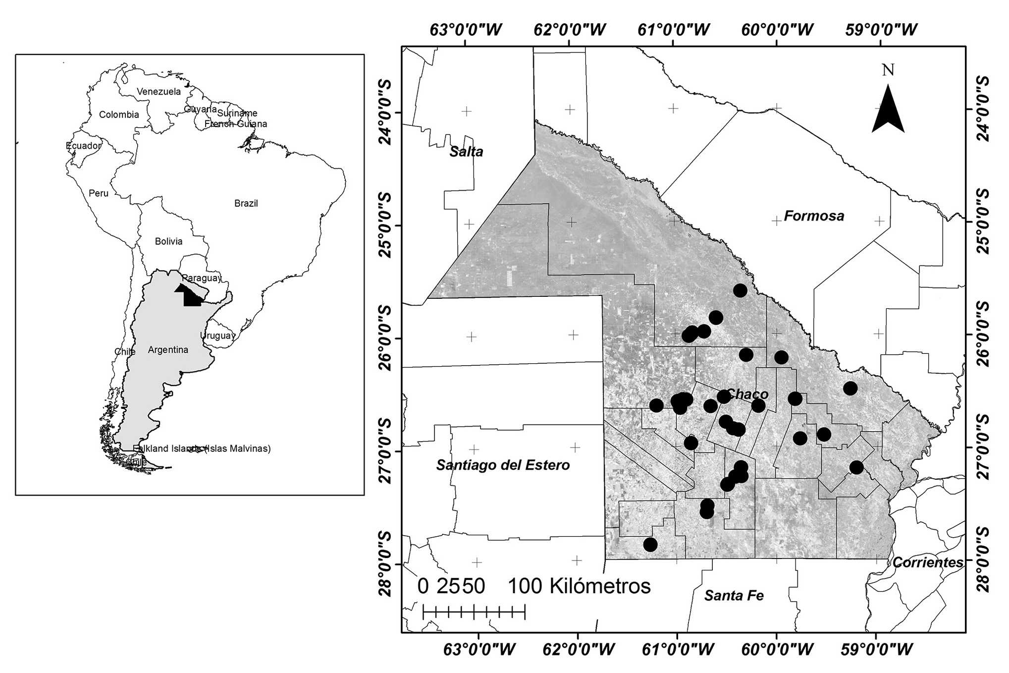 El área de estudio abarca 15 departamentos de la provincia del Chaco (figura 1).
