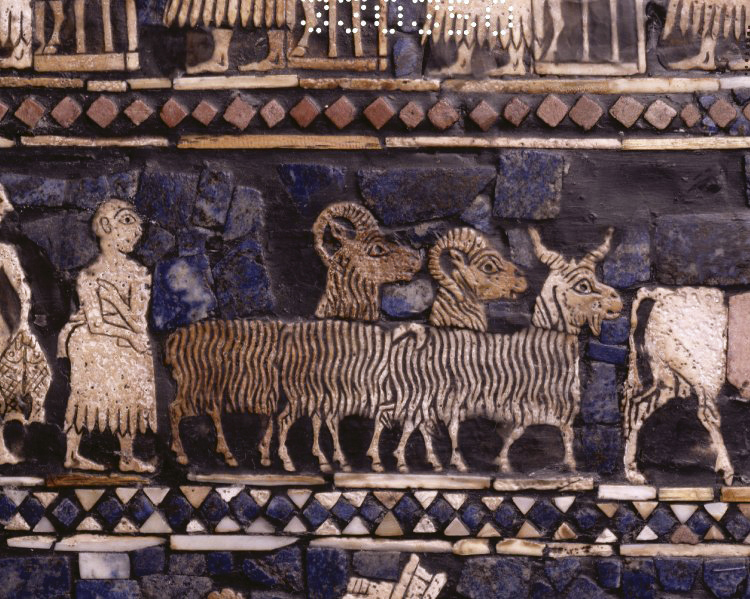 El caprino fue domesticado hace unos diez mil años (Zeder y Hesse, 2000) y hay evidencias de que fibras caprinas fueron usadas para vestimenta hace más de cuatro mil años. En el Estandarte de Ur (Iraq), que se remonta al siglo xxvi a. C., se pueden observar cabras con vellón tipo Angora (figura 1) y en Umma (Iraq) se encontraron tablillas de arcilla del siglo xxi a. C. con escrituras cuneiformes sumerias haciendo referencia a la producción de pelo de cabra (Jones y Snyder, 1961). Moisés resalta la importancia del pelo de cabra en la Biblia al relatar en el Éxodo de los judíos de Egipto, datado entre los siglos xiii y xiv a. C.: “Harás asimismo cortinas de pelo de cabra para una cubierta sobre el tabernáculo” y “Todas las mujeres cuyo corazón las impulsó en sabiduría hilaron pelo de cabra” (Éxodo 35 y 25).