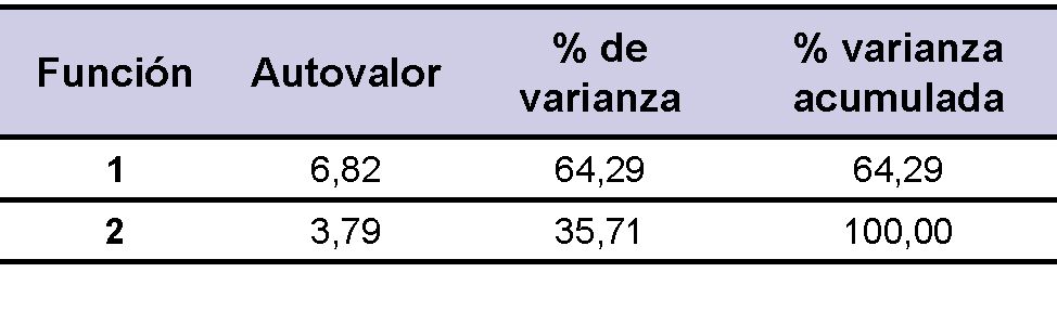 En la tabla 4 se indican los autovalores, es decir, el peso de cada una de las funciones a la hora de explicar el total de la varianza (% acumulado).