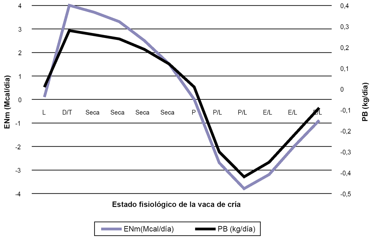 ENm: Energía neta de manteniminto y PB: proteína bruta (NRC, 2000)