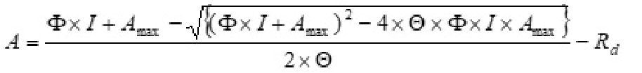 ɸ : Eficiencia fotosintética (basada en fotones absorbidos o incidentes).
