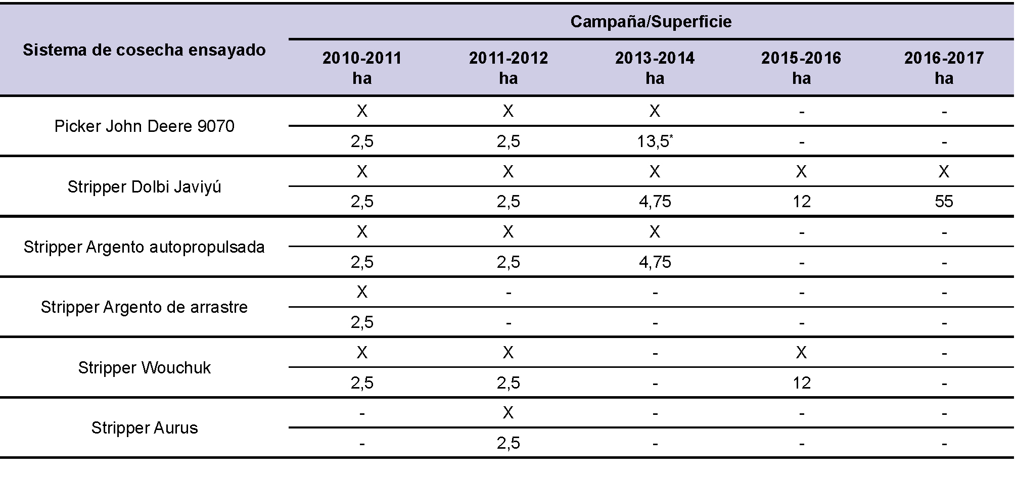 Nota: Todos los sistemas de cosecha tipo stripper poseían sistema de prelimpieza operando en las condiciones habituales de los contratistas que realizan tareas de cosecha.