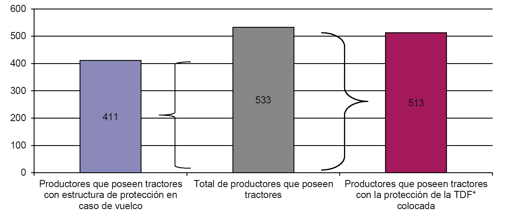 Productores que poseen tractores con estructura de protección en caso de vuelco y la protección de la toma de fuerza (TDF) colocada.