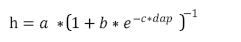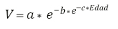 Donde V: es el volumen total por hectárea (m3.ha-1), Edad: es la edad del rodal, a b y c los parámetros del modelo.