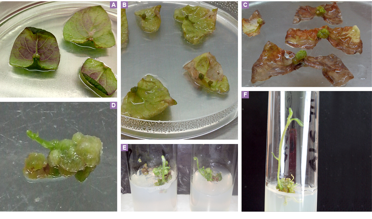 A medida que se formaron los ápices (5-10 mm de tamaño), se cortaron cuidadosamente de los callos y se pasaron a tubos que contenían medio MS y se mantuvieron a 21 °C bajo fotoperiodo 16/8 (luz/oscuridad; 80-110 µE/m2/s).