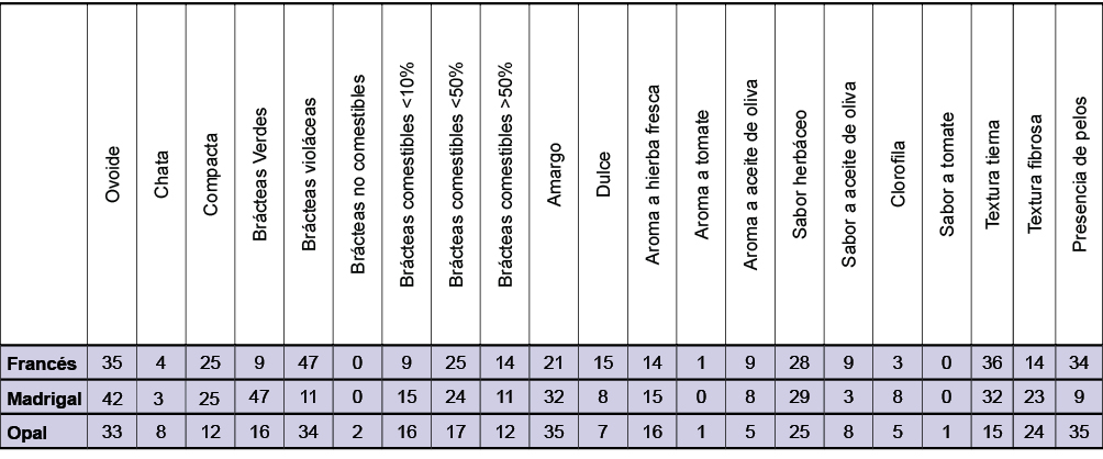 En síntesis, Romanesco tiene consumidores que lo aprecian, pero también tiene detractores; Madrigal es más homogéneo, al igual que Opal, pero este último tiene más apreciaciones negativas. Los participantes prefirieron alcauciles tiernos y dulces, características brindadas por el alcaucil Romanesco.
