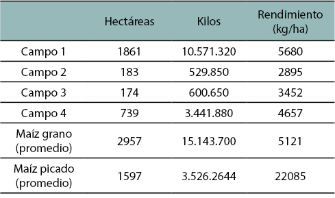 Una limitante de este estudio es que la metodología utilizada no considera el balance de carbono del cultivo de maíz ni el de cobertura, tanto por falta de información, como por factibilidad técnica de su cálculo, que escapa a los objetivos de este trabajo.