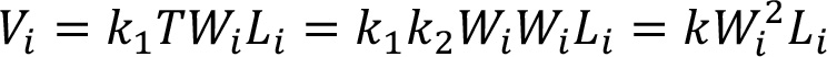 When the grain rests on a flat surface, a plane is generated by lengths Wi and Li that are parallel to the plane of support, which validates the assumption that Wi is greater than Ti. Thus, when a scanner is used and the grains are placed in the tray, it records an image for each grain in which Wi and Li are always visible. Taking this into consideration, we can yield Equation 3 as a proposed thickness approximation.
