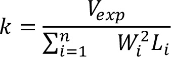 With the value of the constant k determined, the expression in equation 6 is used to calculate the volume of the sample. Since the volume of the grain is smaller than that of the parallelepiped that contains it, the value of the constant k must be less than unity.