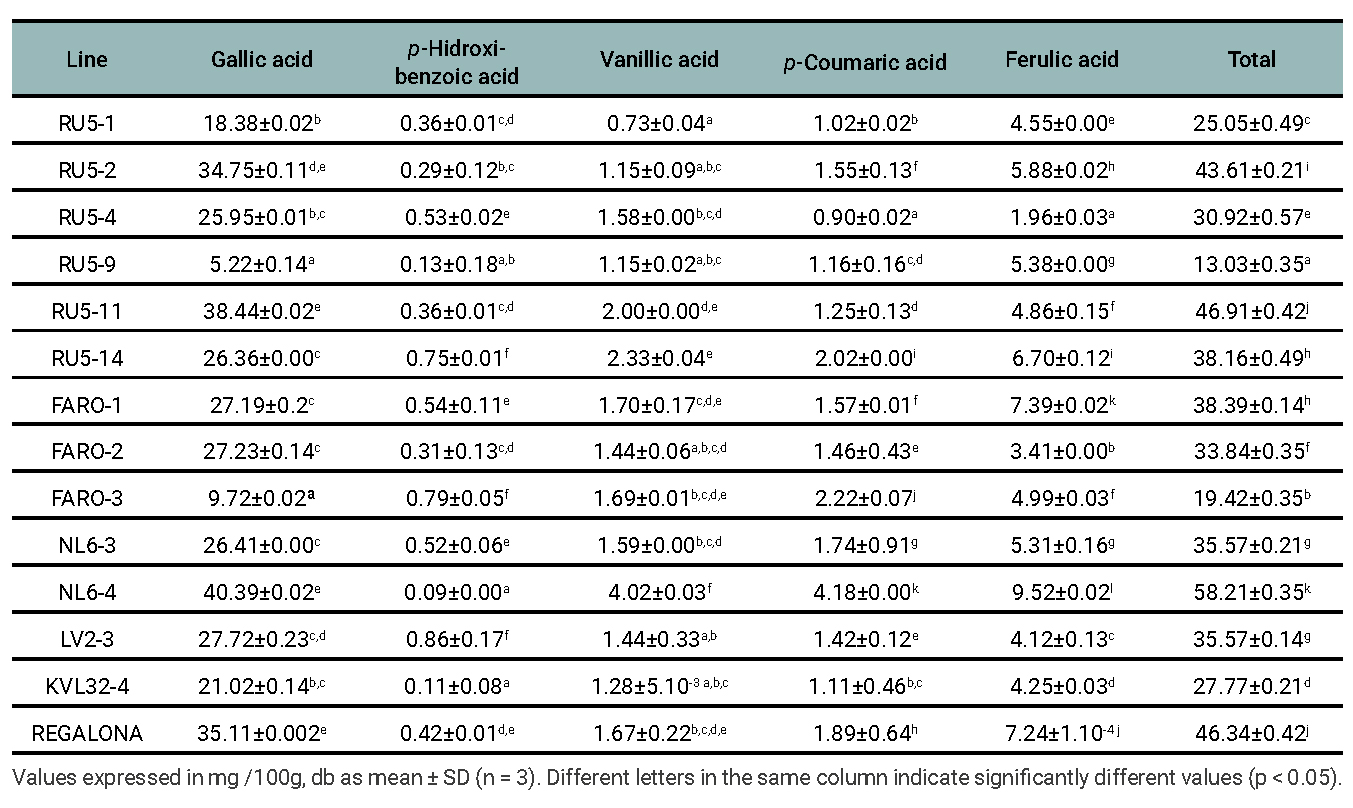 Main phenolic acid contents in grains from the selected quinoa lines.