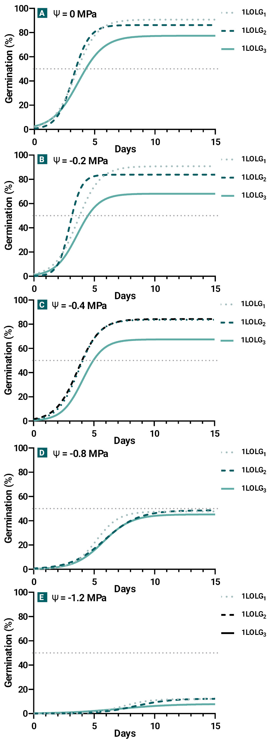 Cumulative germination was fitted to the logistic model described in Equation 1.