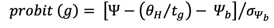 The relationship between g and tg at any constant Ψ was analyzed using this probit transformation of g. For each constant Ψ Probit (g) was plotted against Ψ(θH/tg) using various values of θH until the best fit or minimal residual was achieved. The standard deviation in base water potential within the seed population (σΨb, MPa) is the inverse of the slope obtained from this plot.