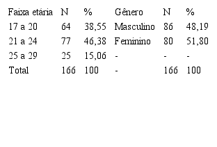 A amostra estudada inclui participantes de 17 a 29 anos, sendo cerca de 52%[7] mulheres e 48% homens (Tabela 1).