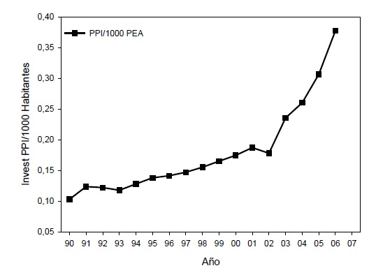 Una referencia para señalar el éxito del programa nos la suministra Daissy Marcano (2007), entonces presidenta del Observatorio Nacional de Ciencia y Tecnología (ONCTI).Citamos la fuente oficial, en la que se muestra que incluso en términos de investigadores por habitantes se experimentaba un crecimiento, que nos ubicaba entre los países de América Latina con una proyección en ascenso por cada 10.000 habitantes. Venezuela reportaba para el año 2007, un total de 5222 investigadores reconocidos por el PPI: "En el período 90-98 la tasa de crecimiento promedio anual fue de 5,5% y el crecimiento total del mismo periodo fue de 51,3%. En el periodo 99-2005 la tasa de crecimiento promedio fue de 10,6% y el crecimiento total del mismo período fue de 85,4%."72Los cambios operados en el Sistema Nacional de Investigadores habían generado un balance positivo: "Estos resultados son consecuencia de los cambios en los criterios de evaluación realizados entre 2001 y 2002, proceso que se asumió luego de consultas y discusiones con la finalidad de cumplir efectivamente con el principal objetivo del programa, el cual es la promoción de la actividad científica y tecnológica en el país. Estos cambios mejoraron las condiciones de ingreso al Programa y aun cuando faltan algunos ajustes, algunos son de alta significación. Entre otros destacan el reconocimiento a la contribución que hacen los investigadores en la formación de nuevos investigadores, sobre todo para aquellos calificados en los niveles más altos del Programa. Así, para que una persona sea considerada como Investigador Nivel IV debe haber sido tutor de por lo menos cinco trabajos especiales de grado aprobados, o tesis de postgrado aprobadas, de las cuales al menos una debe corresponder a un doctorado. Los criterios de evaluación vigentes se hallan publicados en el portal del ONCTI (2007)."73Los niveles estaban de la siguiente manera; se ingresaba Candidato, Nivel I, Nivel II, Nivel III, y Nivel IV, luego de varias convocatorias se optaba al nivel Emérito; "La creación del PPI estuvo muy influenciada por el Sistema Nacional de Investigadores (SNI) de México, instrumentado en ese país desde 1984. En entrevista al, para entonces, Secretario Técnico (Medina, 1991) del PPI, este señalaba que “El PPI es una adaptación realizada por una comisión preparadora perteneciente al CONICIT, de lo que en México se denomina Sistema Nacional de Investigación. De hecho, al comparar el contenido del reglamento inicial del PPI con el del SNI, se encuentra que hay una gran similitud entre ellos. El PPI se ejecuta mediante convocatorias anuales. Los aspirantes son evaluados por pares constituidos en comisiones de áreas y clasificados en tres categorías: Candidato, Investigador y Emérito. La categoría de Investigador comprende cuatro niveles: I, II, III y IV, habiendo sido introducido este último nivel en la modificación estatutaria efectuada en el 2000."7475La diferencia es que el sistema mexicano ha podido revisarse en función del contexto sin eliminar la base de datos original, no tuvo esa misma suerte el sistema de investigación en Venezuela, a pesar de haber sido exitoso. Los criterios políticos-partidistas del Partido Socialista Unido de Venezuela (PSUV) pudieron más que los criterios académicos. Una muestra del éxito del programa se representa en la siguiente gráfica: