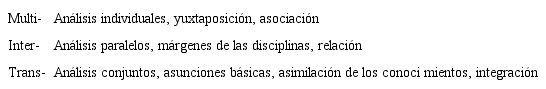 La complejidad permite, además y a partir de los enfoques multi-, inter- y trans- (tabla 1), sobre todo este último, visualizar y ser consciente de los cambios que se están produciendo en un mundo cada vez más conectado y en el que la hibridación entre humanos y máquinas -lo que Donna Haraway denominó cyborgs19- está condicionando las relaciones sociales, cambiantes a una velocidad desconocida hasta las últimas décadas. La adopción de enfoques complejos nos permite dar respuestas diferentes, posiblemente más adecuadas a un mundo en continua transformación. Ahora bien, para un mejor análisis y diagnóstico de los distintos contextos es importante, como desarrollaré a continuación, emprender abordajes transdisciplinares a partir de los que evitar las oposiciones disciplinares y en los que las continuas comunicaciones y convivencia se conviertan en una necesidad epistemológica. A partir de aquí, la propuesta es generar una investigación más respetuosa con los diferentes aspectos del conocimiento en las que el diálogo forme parte fundamental del método.
