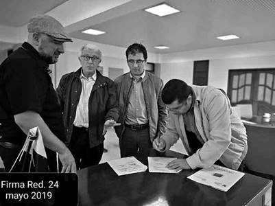 Firma de Protocolo de la Red de Investigación Pedagogías, Paz y Poblaciones resilientes, Tunja, Uptc, 24 mayo 2019. Foto realizada por Diana Soto Arango