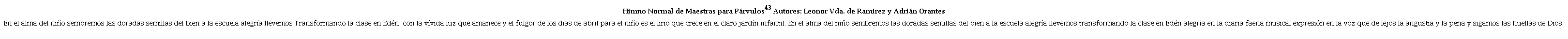 La Escuela Normal cuenta con un himno cuya letra valora e identifica las cualidades que se tienen en el desarrollo de los procesos educativos y de su función primordial, como ente que forma a las maestras que se dedicarán al cuidado y enseñanza a niños y niñas del nivel preprimario.