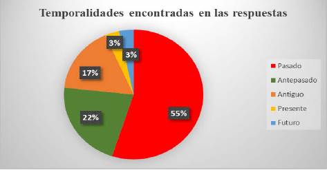 El cuadro 1 muestra la relación entre la temporalidad catalogada y las respectivas expresiones verbales.