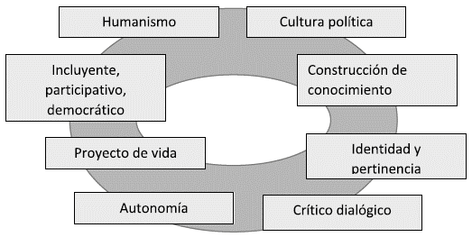 Se fundamenta en un proceso dialógico que permite establecer planteamientos, la contribución de enfoques diferenciales, la formulación de cuestionamientos, asumir responsabilidades, reconocer la diversidad. Da apertura a críticas argumentadas, donde prime el respeto por la condición de los demás, con principios de solidaridad, derecho a la diferencia. Promueve el aprender a conocer, a hacer, a vivir y a ser desde la interculturalidad y multiculturalidad.