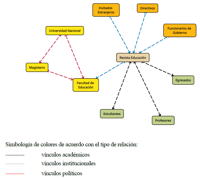 Los profesores que publicaron en la revista Educación eran parte de las facultades de educación o de escuelas urbanas o rurales de diferentes regiones de Colombia. Sus preocupaciones giraron en torno a la escuela, los estudios e investigaciones pedagógicas, la implementación de proyectos de ley la reforma educativa, mejoramiento de la infraestructura escolar y temáticas relacionadas con saberes impartidos dentro del aula de clase. Sus textos se presentaron como artículos, investigaciones, conferencias, estudios, proyectos de ley y opiniones.