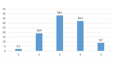 Pero además de las dificultades señaladas, la encuesta evidencia que el nivel de ruido en casa era un obstáculo para la concentración. Al pedirle a los estudiantes que calificaran el nivel de ruido e interferencia externa en el entorno en que usualmente estudiaban y se conectaban a las clases, siendo 1 el nivel más bajo o inexistente (no genera interferencia) y el nivel 5 el más alto (dificulta seriamente el desarrollo de la actividad), solamente un 2,1 % se ubica en nivel 1 y la mayor proporción se estudiantes seleccionó 3 (38,1%) y 4 (32,1 %).