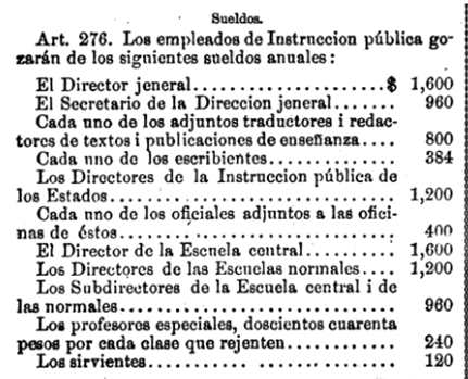 Se destaca que, en Colombia en el Decreto Orgánico de Instrucción Pública del 1 de noviembre de 1870, capítulo VI, artículo 277 se estableció que los sueldos serían definidos “de conformidad con las leyes de los Estados; pero en ningun caso serán inferiores a las asignaciones anuales siguientes”44 (Figura 3).