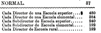 Otro cargo desempeñado por mujeres fue el de subdirectora del departamento de mujeres de la escuela central, quien obraba “bajo la dirección i vigilancia del Director de la Escuela”42 A diferencia de lo ocurrido en Argentina, los sueldos (Figura 2) de los hombres y mujeres de la Instrucción pública en Colombia no tenían ningún tipo de distinción.
