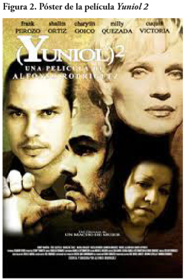 Aunque se trata de una película cuya trama denuncia directamente la exclusión social dominicana, tal finalidad se logra mediante la representación de dos familias, una rica y otra pobre, a través de las cuales giran todas las acciones7 (figura 2). La familia de Juan Pérez García (Shalim Ortiz), a quien todos llaman Yuniol, pertenece al tipo de familia monoparental, ya que se compone solo por su madre Tata (Milly Quezada) y su hijo. Ella recibe la ayuda de su padre, quien es empleado de la empresa de la familia rica, compuesta por Alberto (Cuquín Victoria), Aurora (Charitín Goico) y Juan Ríos de la Piedra (Juan Perozo, como Yunior, el rico).